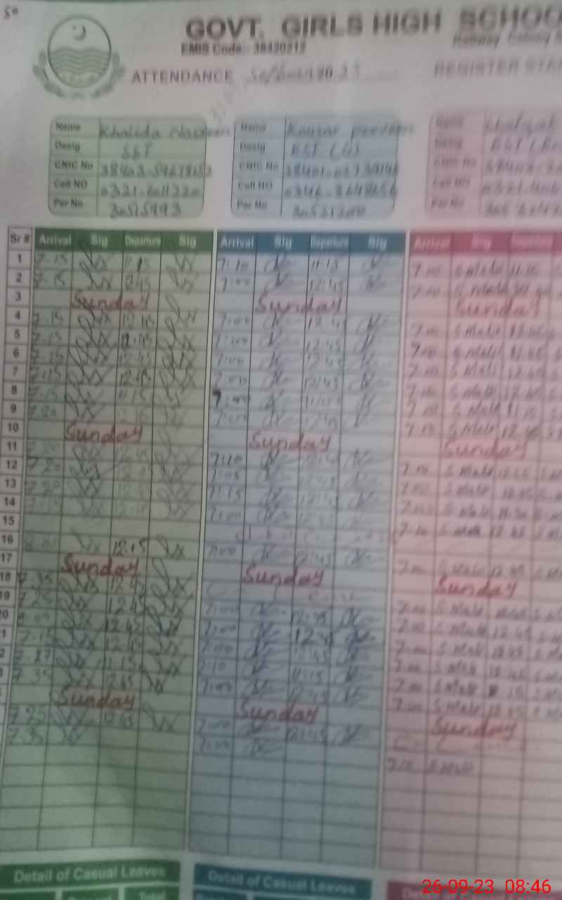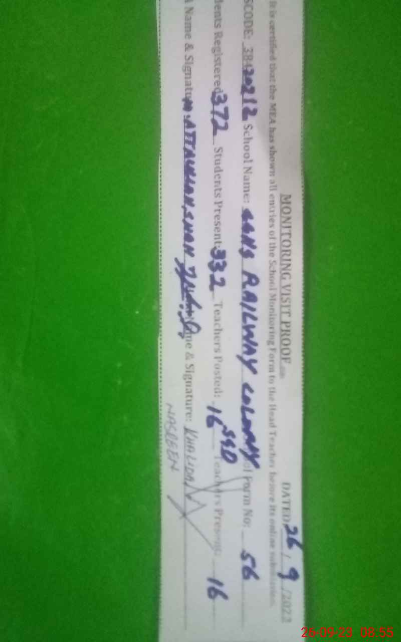 | EMIS Code: 38420212 | Name of School: GGHS RAILWAY COLONY SARGODHA | |||