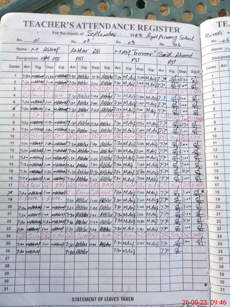 | Name: Mu**** As**** Designation: (School Headmaster's/Headmistress's) PST Phone/Cell Number: 03**** |