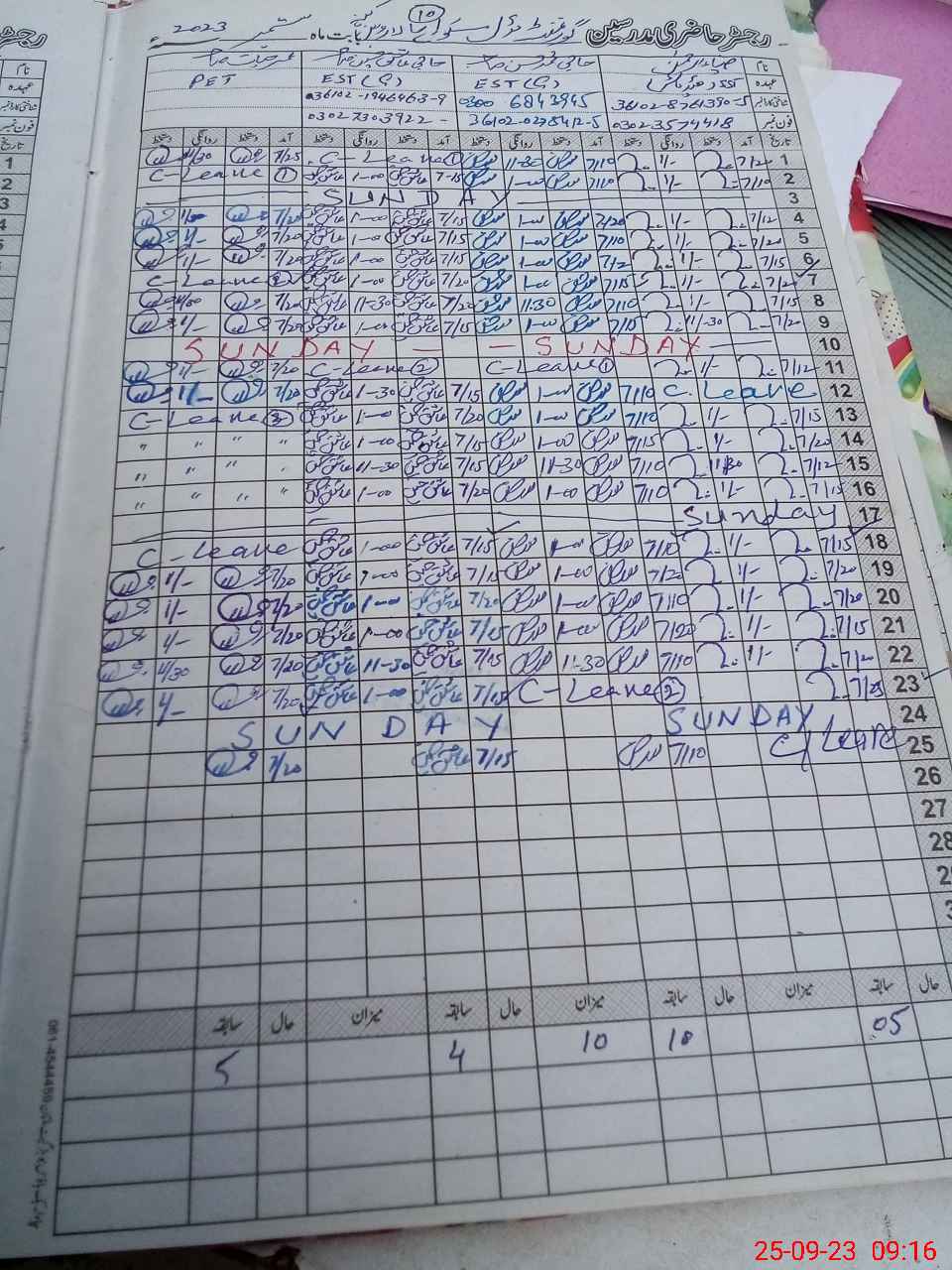 | Leave | Duty | Absent | Maternity | Medical | Ex- Pak |