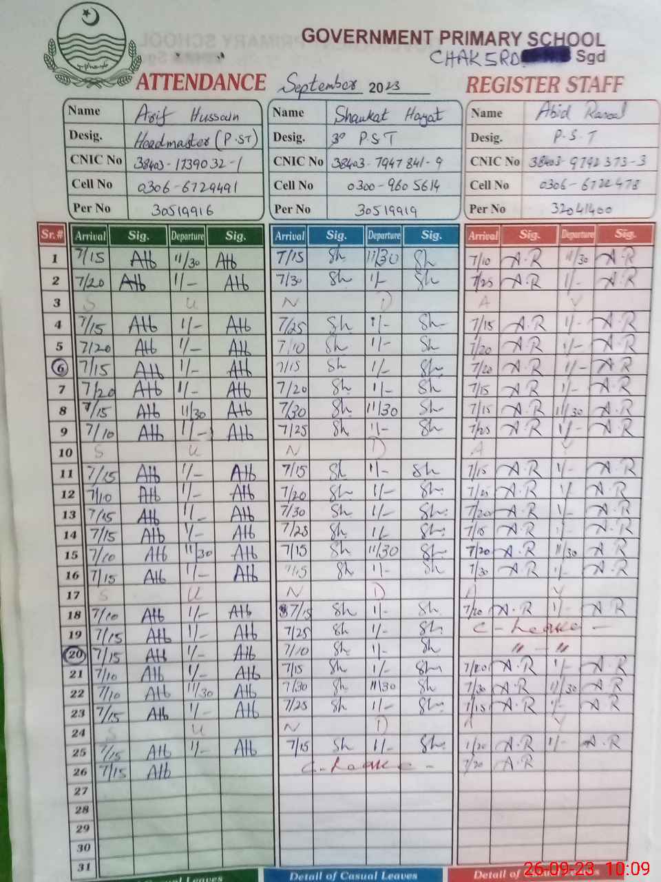 | Name: Um**** Ta**** Designation: (School Headmaster's/Headmistress's) PST Phone/Cell Number: 03**** |
