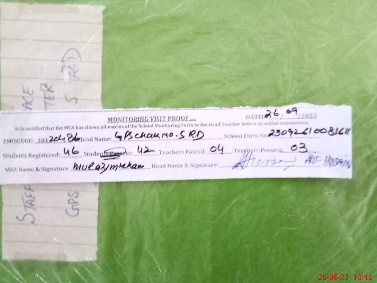 | EMIS Code: 38420486 | Name of School: GPS CHAK NO.5 REMOUNT DEPOT | |||