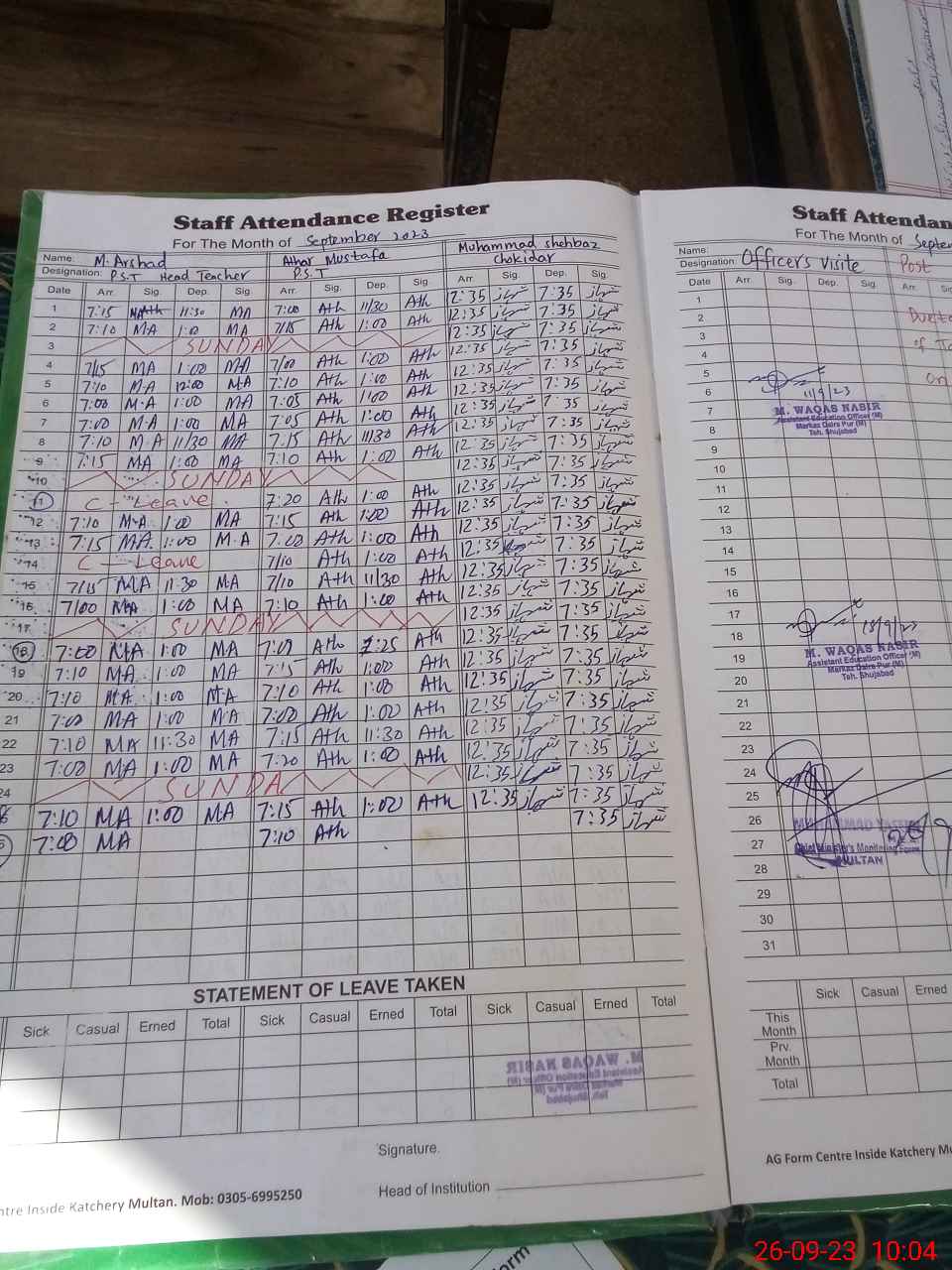 | Name: Mu**** Ar**** Designation: (School Headmaster's/Headmistress's) Pst Phone/Cell Number: 03**** |