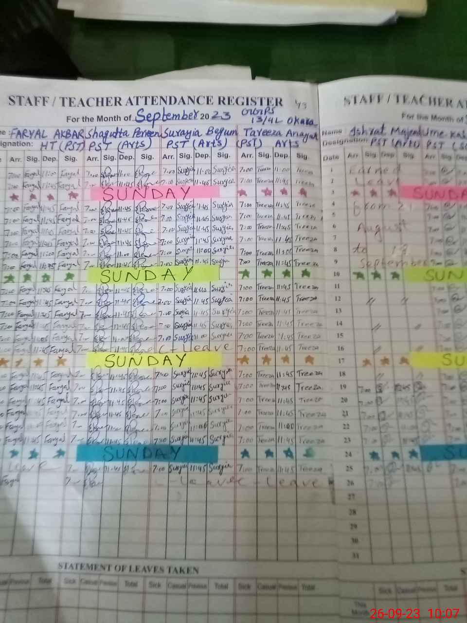 | 35**** | Na**** Kh**** | 1 | 1 | 0 | 0 | 0 | 0 | 0 | 0 | 0 | 0 | 0 | Absent (Un-Authorized) |