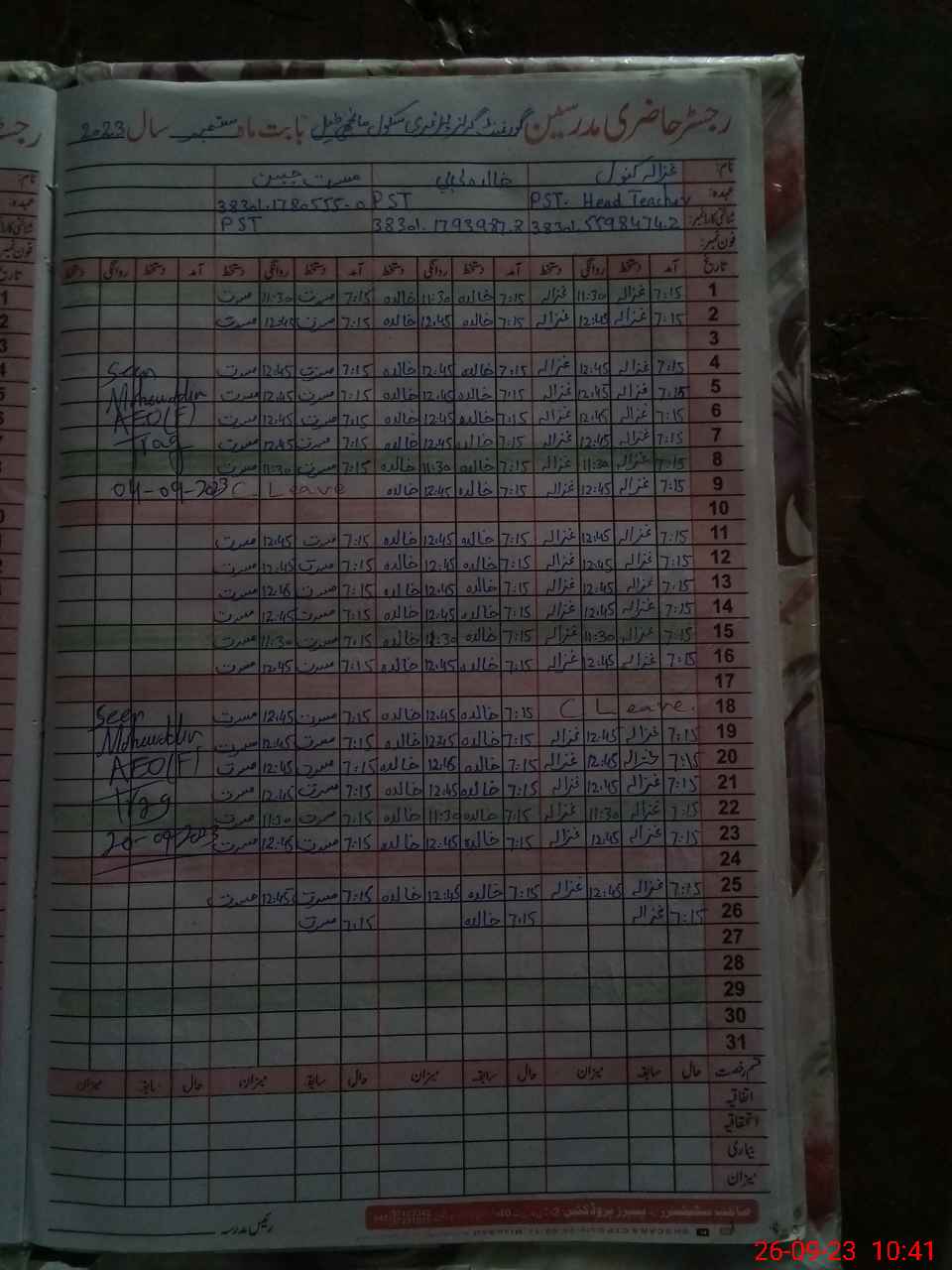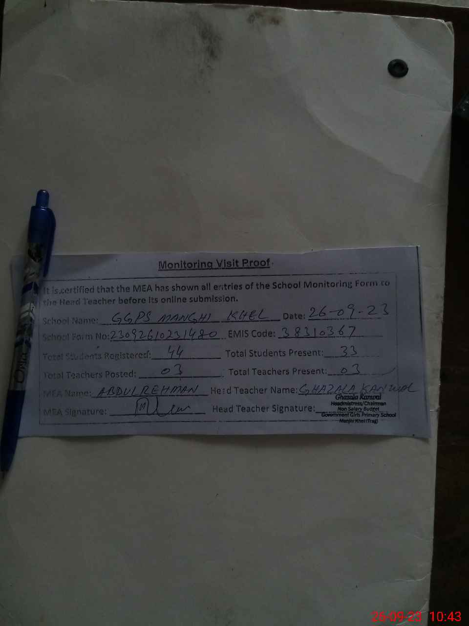 | Attendance Register | Head Teacher | MEA with School | Visit Proof |