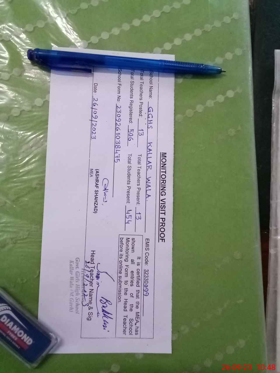 | EMIS Code: 32330099 | Name of School: GGHS KALLAR WALA | |||