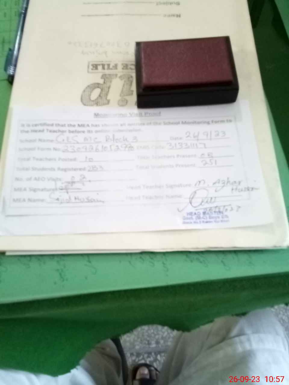 | Certified that this School was Inspected by the Undersigned MEA/DMO Today and the Information Stated Above is as Per Record. | |||||