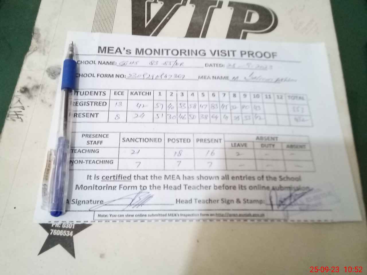 | Certified that this School was Inspected by the Undersigned MEA/DMO Today and the Information Stated Above is as Per Record. | |||||