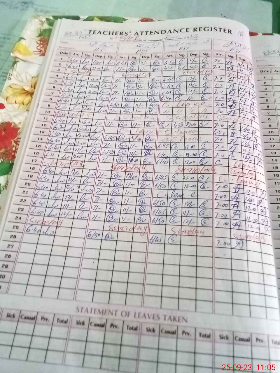 | Leave | Duty | Absent | Maternity | Medical | Ex- Pak |