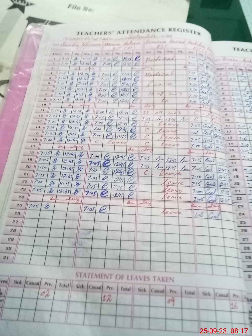 | Leave | Duty | Absent | Maternity | Medical | Ex- Pak |