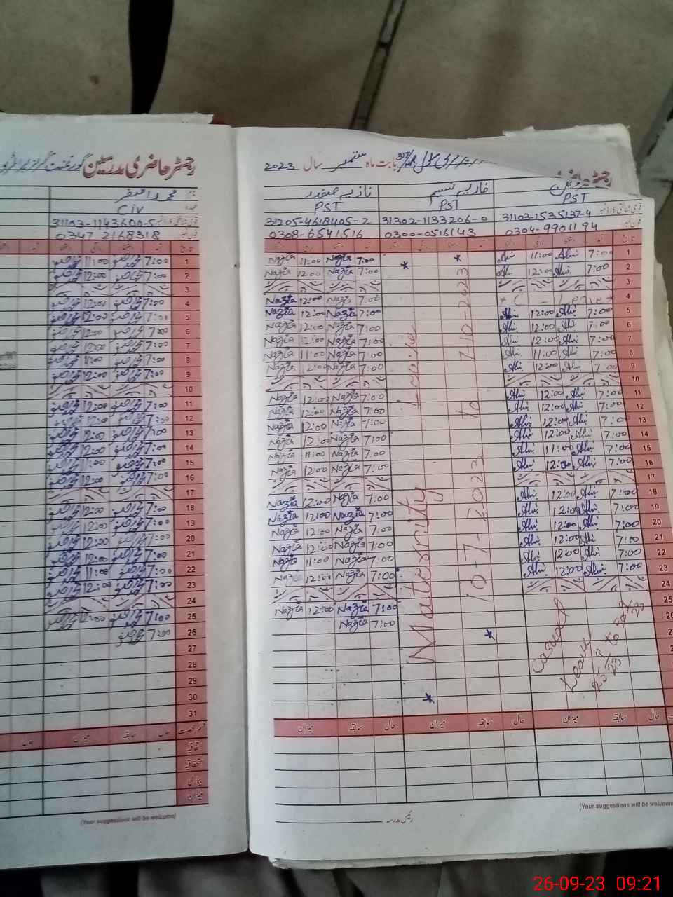 | Leave | Duty | Absent | Maternity | Medical | Ex- Pak |