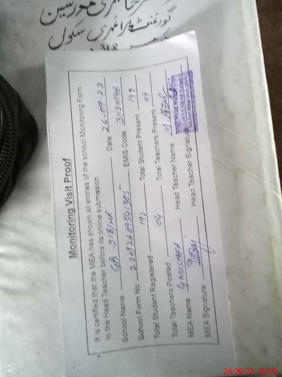 | EMIS Code: 31130146 | Name of School: GPS CHAK 318/HR | |||