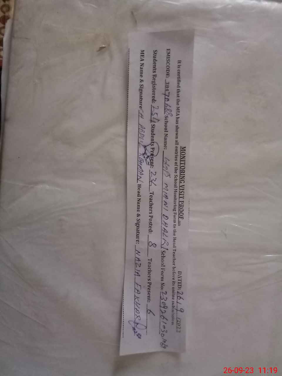 | Certified that this School was Inspected by the Undersigned MEA/DMO Today and the Information Stated Above is as Per Record. | |||||