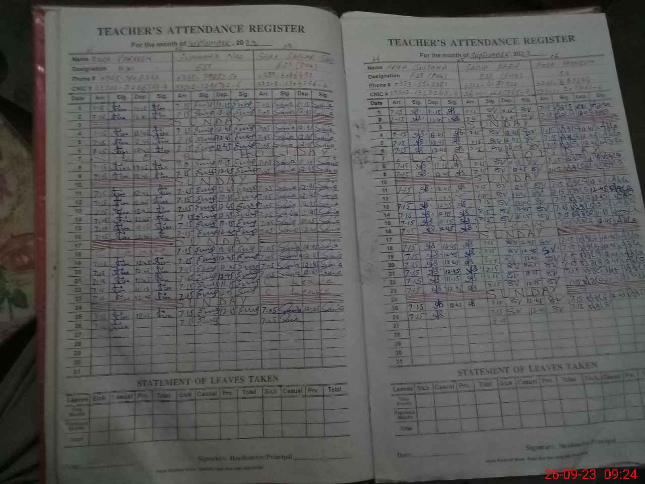 | Name: Az**** pe**** Designation: (School Headmaster's/Headmistress's) sse Phone/Cell Number: 03**** |