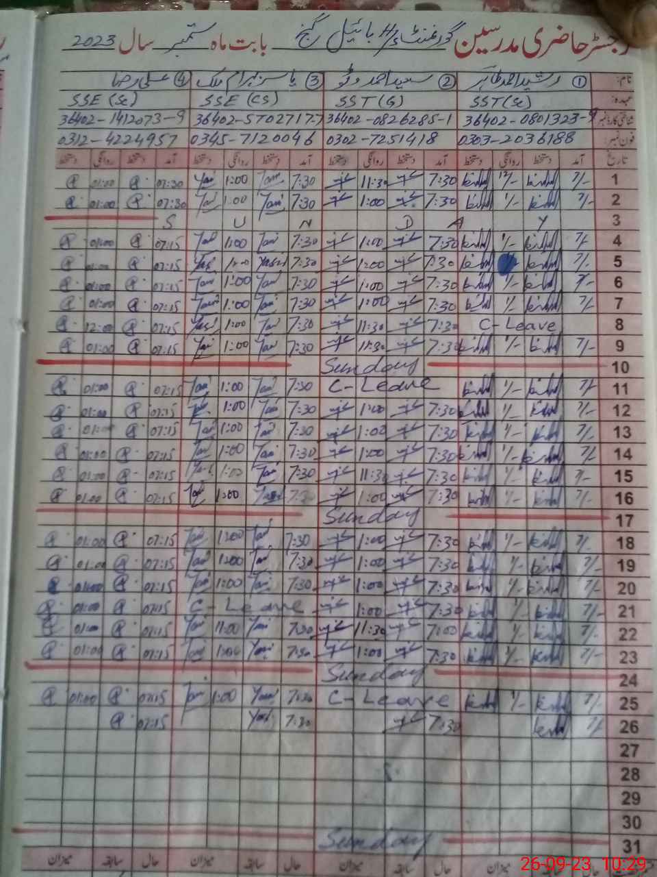 | CNIC | Full Name | Designation | R/C | Absence During Last Calender Month |
