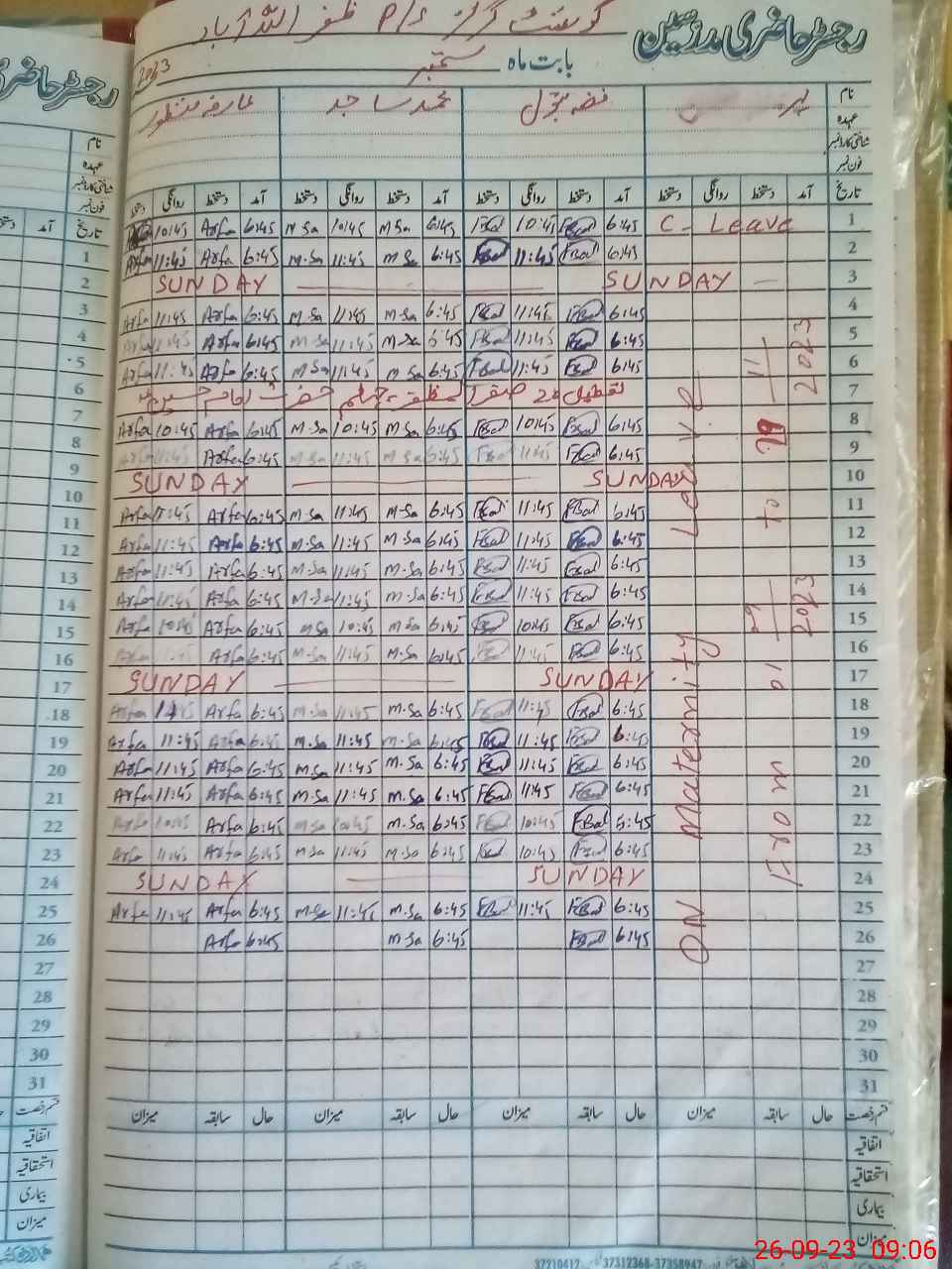 | CNIC | Full Name | Designation | R/C | Absence During Last Calender Month |