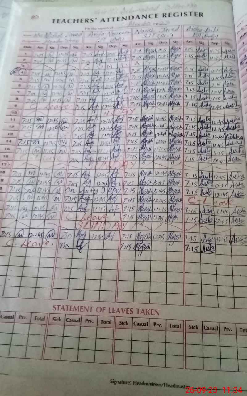 | Name: Ar**** No**** Designation: (School Headmaster's/Headmistress's) Headmistress Phone/Cell Number: 03**** |