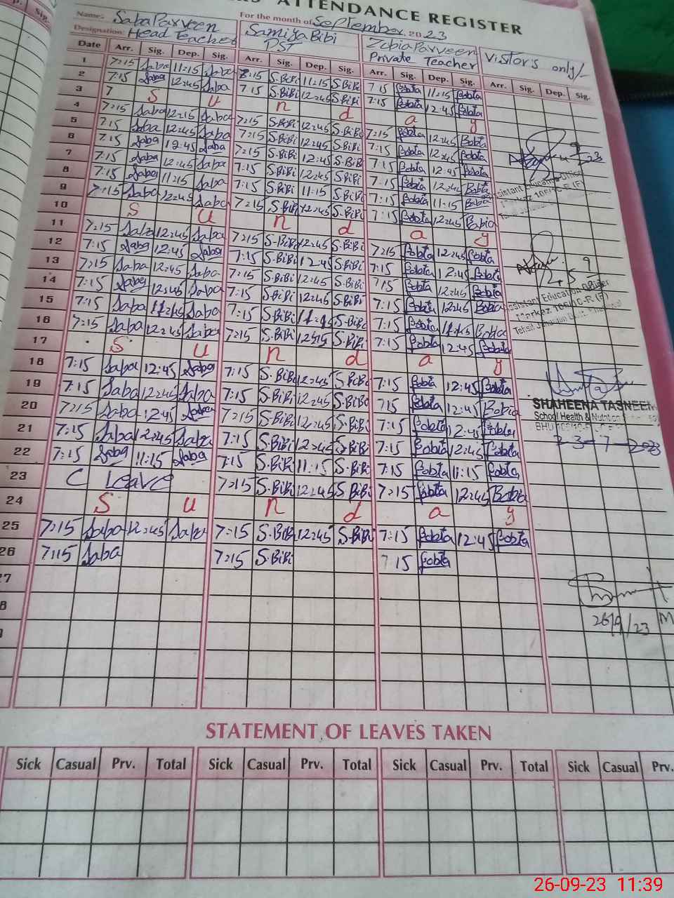 | Monitoring Date: 26-09-2023 | Start Time: 26-09-2023 11:01 AM | End Time: 26-09-2023 11:41 AM | Name of MEA: M.Is**** (S**** 03**** | |