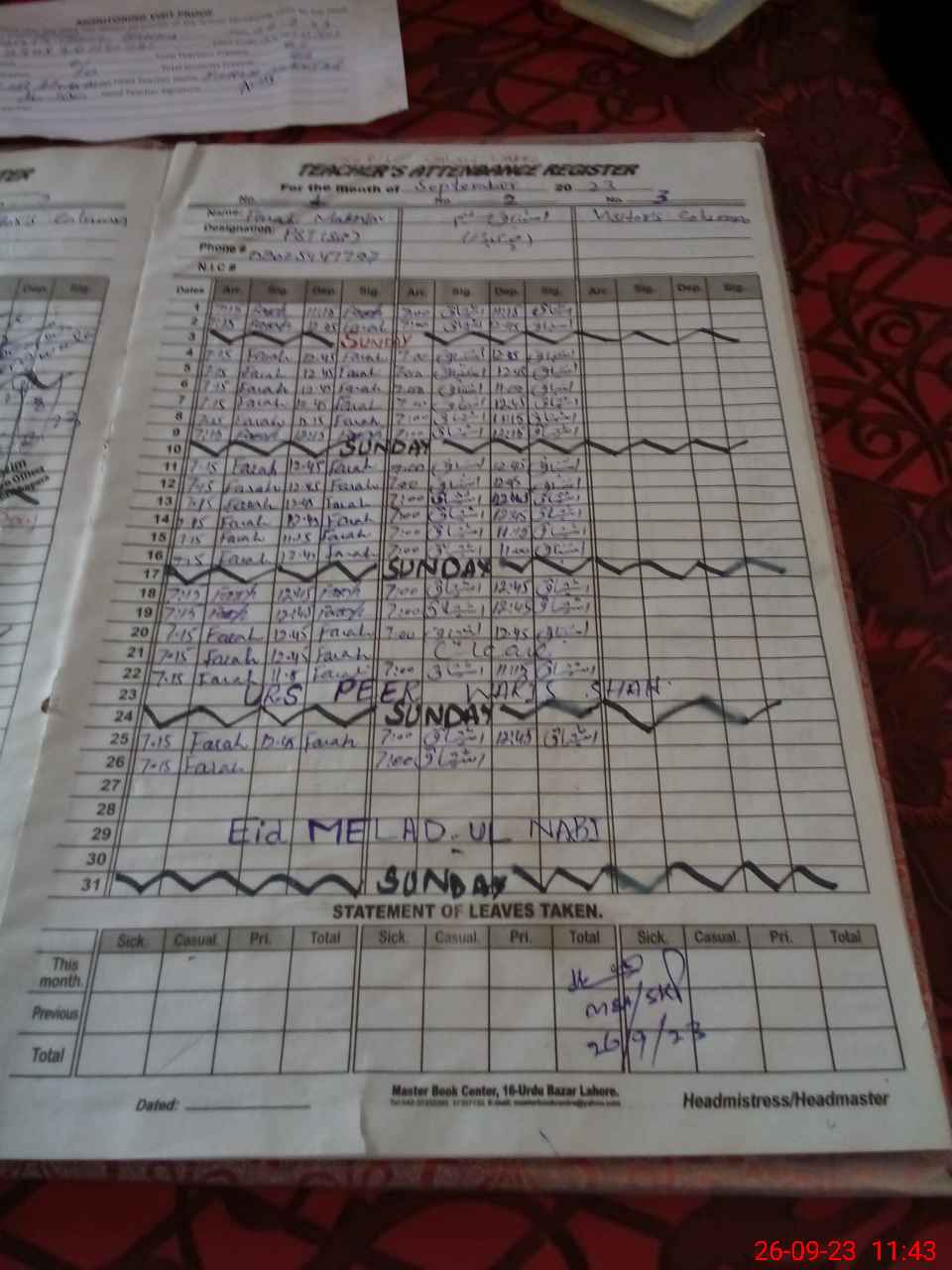 | Name: FA**** MU**** Designation: (School Headmaster's/Headmistress's) PST Phone/Cell Number: 03**** |
