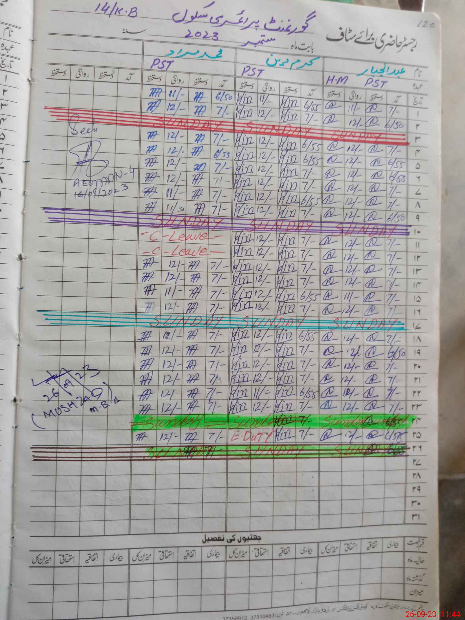 | Leave | Duty | Absent | Maternity | Medical | Ex- Pak |