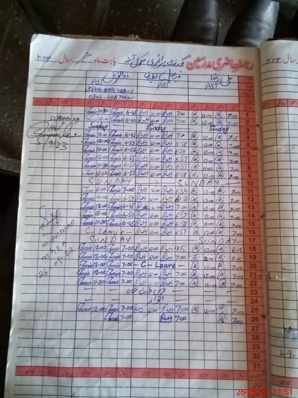 | Name: Zu**** Designation: (School Headmaster's/Headmistress's) PST Phone/Cell Number: 03**** |
