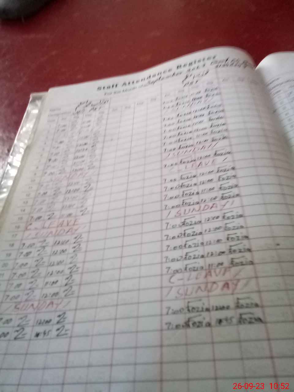 | Leave | Duty | Absent | Maternity | Medical | Ex- Pak |