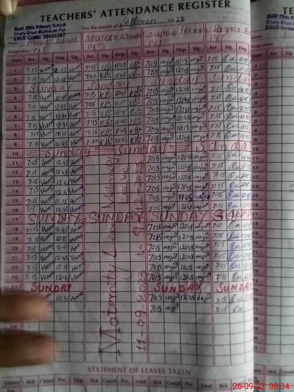 | Leave | Duty | Absent | Maternity | Medical | Ex- Pak |