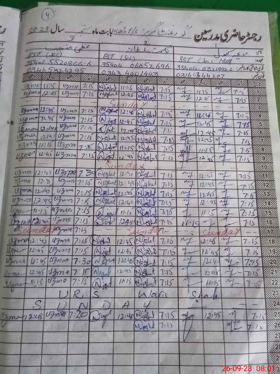 | 35**** | Uz**** Ma**** | 3 | 1 | 0 | 0 | 0 | 0 | 0 | 0 | 0 | 0 | 0 | Absent (Un-Authorized) |