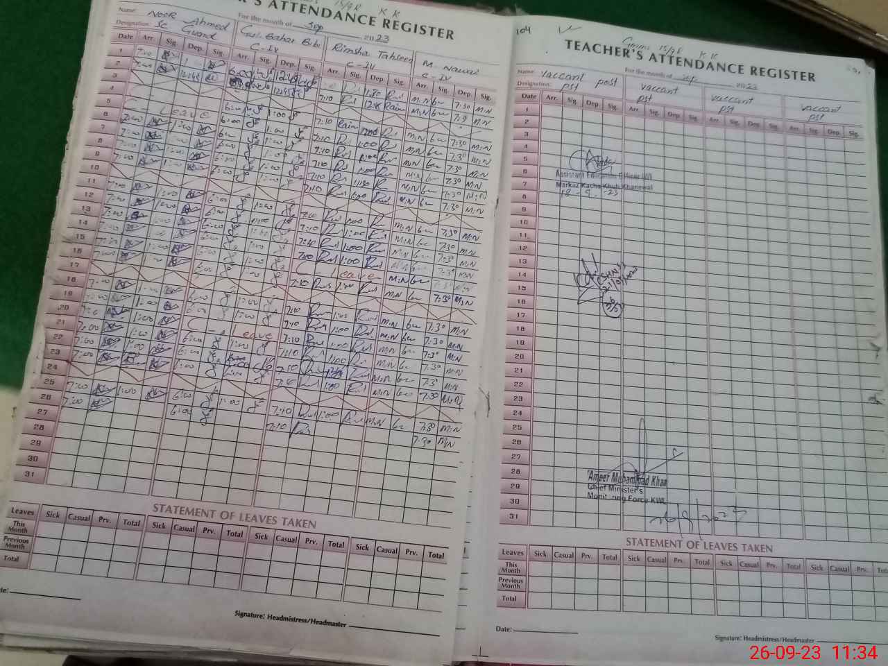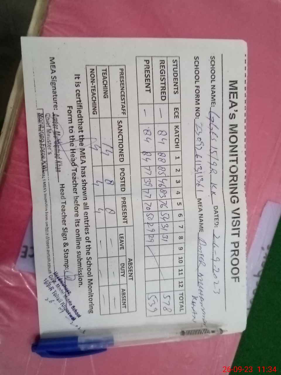 | Attendance Register | Head Teacher | MEA with School | Visit Proof |
