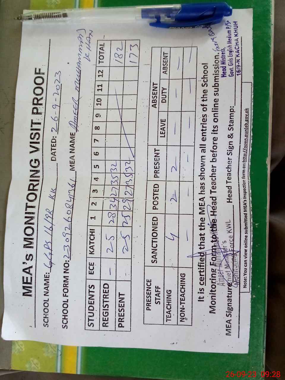 | EMIS Code: 36420463 | Name of School: GGPS 16/9-R, KACHA KHUH | |||