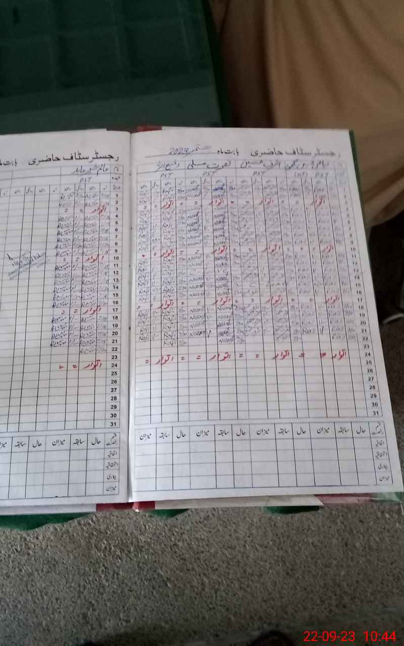 | CNIC | Full Name | Designation | R/C | Absence During Last Calender Month |