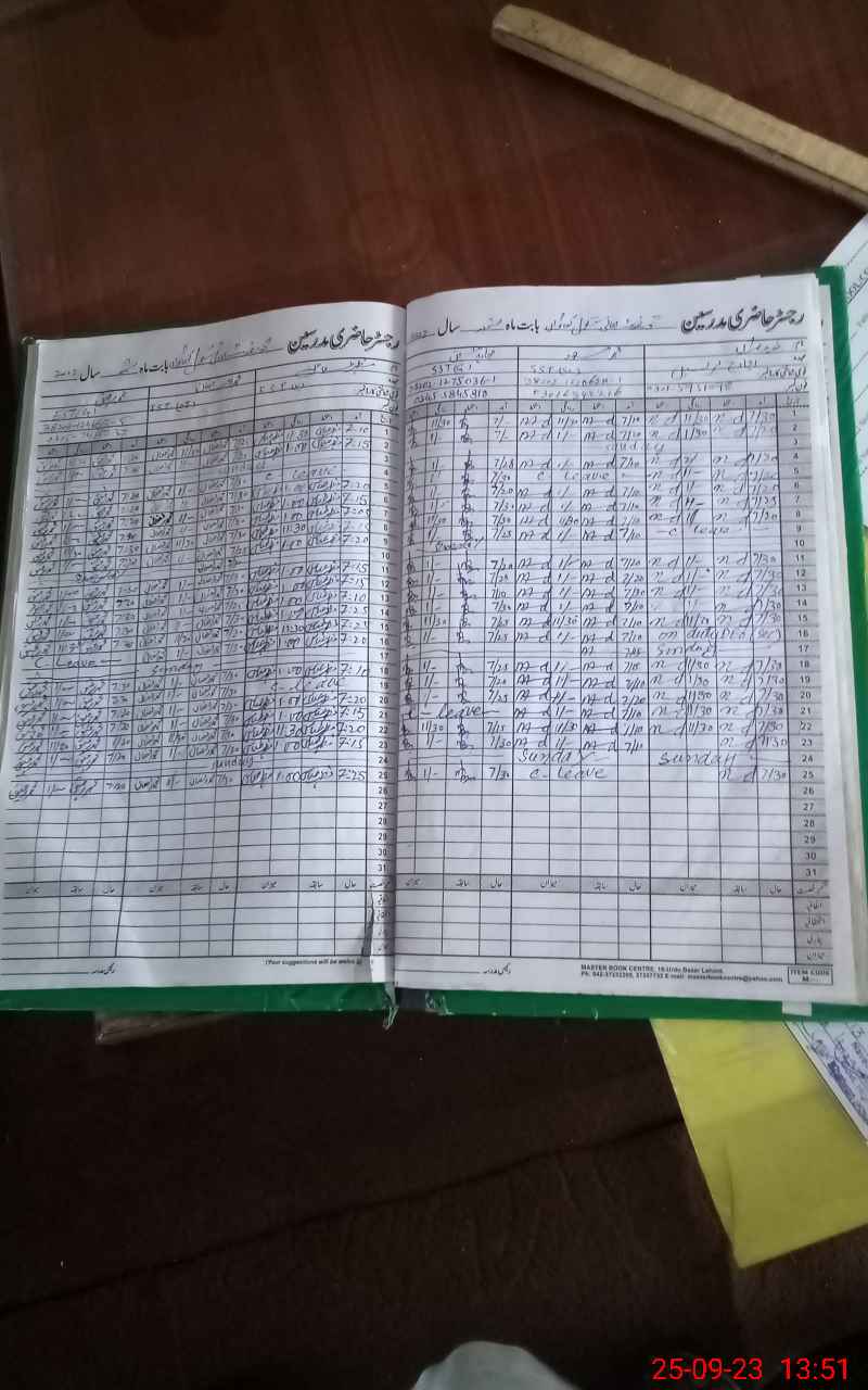 | CNIC | Full Name | Designation | R/C | Absence During Last Calender Month |
