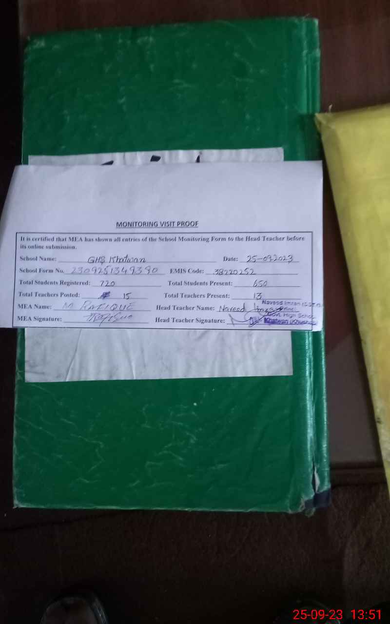 | EMIS Code: 38220252 | Name of School: GHS KHATWAN | |||