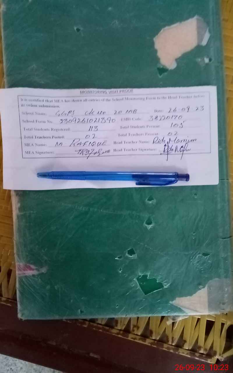 | EMIS Code: 38220170 | Name of School: GGPS CHAK NO 20 MB | |||