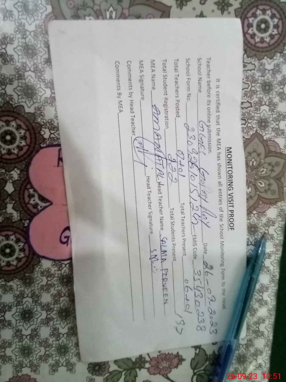 | Certified that this School was Inspected by the Undersigned MEA/DMO Today and the Information Stated Above is as Per Record. | |||||