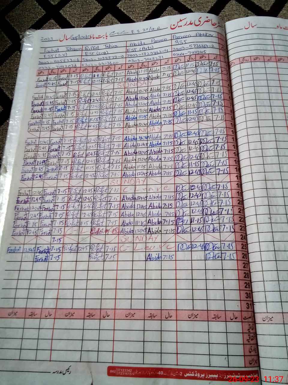 | CNIC | Full Name | Designation | R/C | Absence During Last Calender Month |
