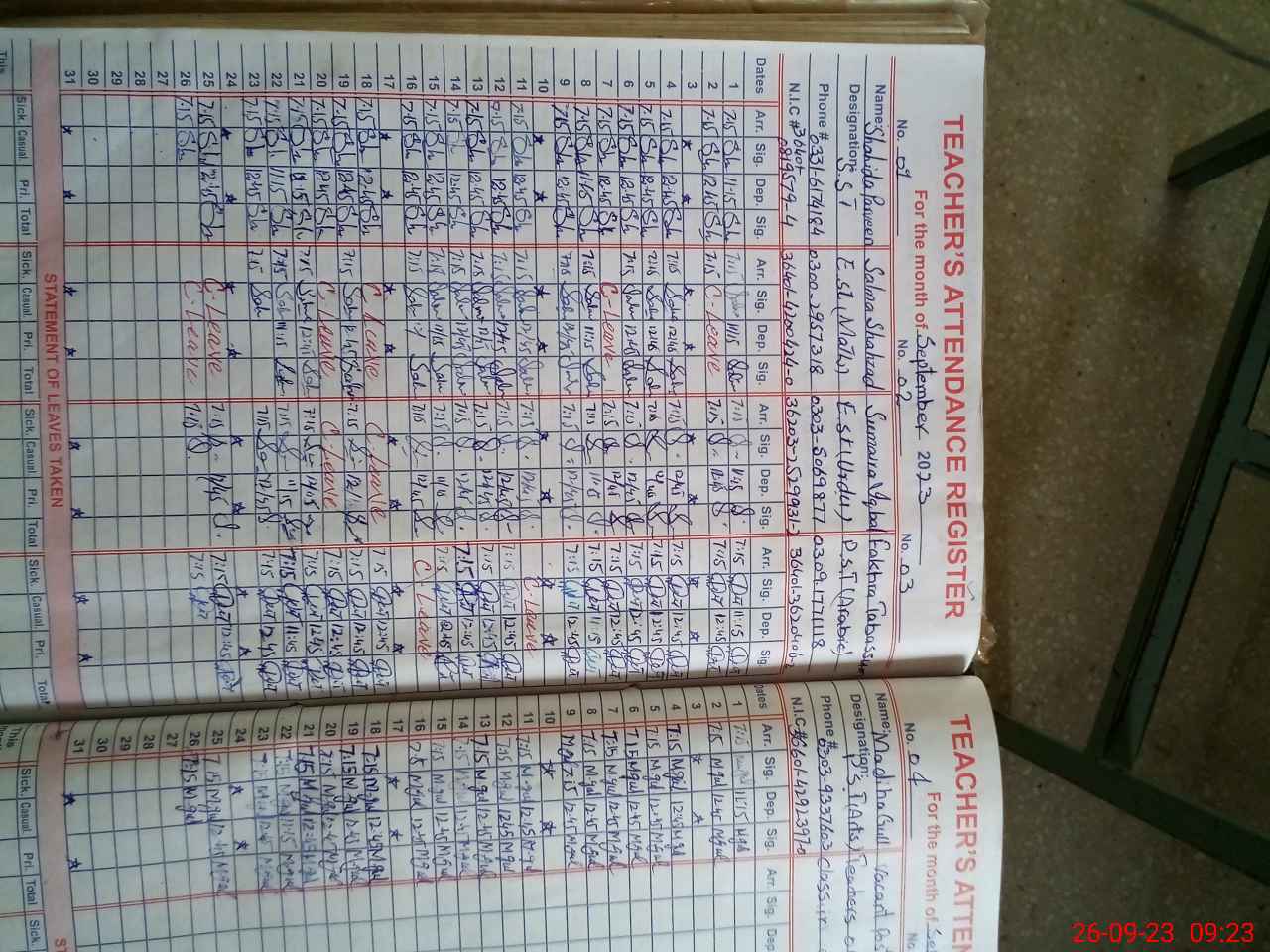 | Name: Su**** Iq**** Designation: (School Headmaster's/Headmistress's) Est G Phone/Cell Number: 03**** |