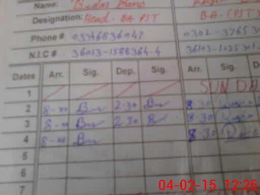 | Name: Fa**** Ta**** Designation: (School Headmaster's/Headmistress's) PST Phone/Cell Number: 03**** |
