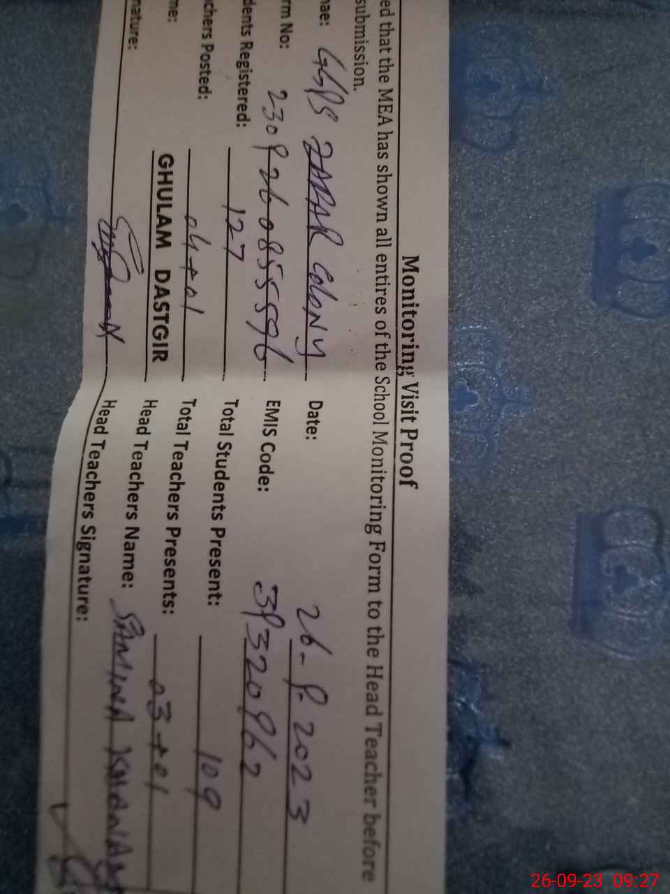 | EMIS Code: 39320962 | Name of School: GGPS MC ZAFAR COLONY | |||