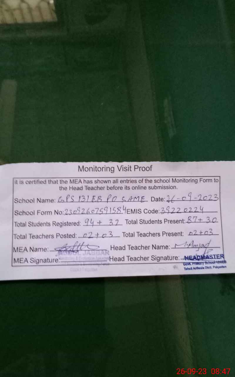 | EMIS Code: 39220224 | Name of School: GPS 131 EB P.O SAME | |||