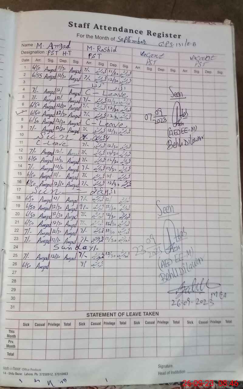 | Name: MU**** AM**** Designation: (School Headmaster's/Headmistress's) PST Phone/Cell Number: 03**** |