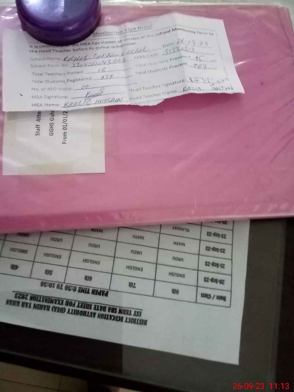 | EMIS Code: 31330513 | Name of School: GGHS GULSHAN IQBAL | |||