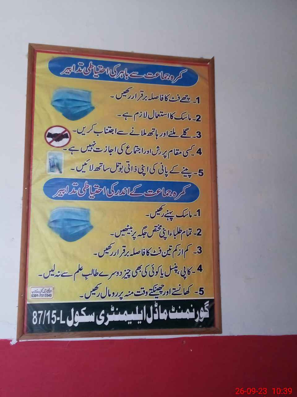 | Name: Mo**** Bi**** Designation: (School Headmaster's/Headmistress's) EST Phone/Cell Number: 03**** |