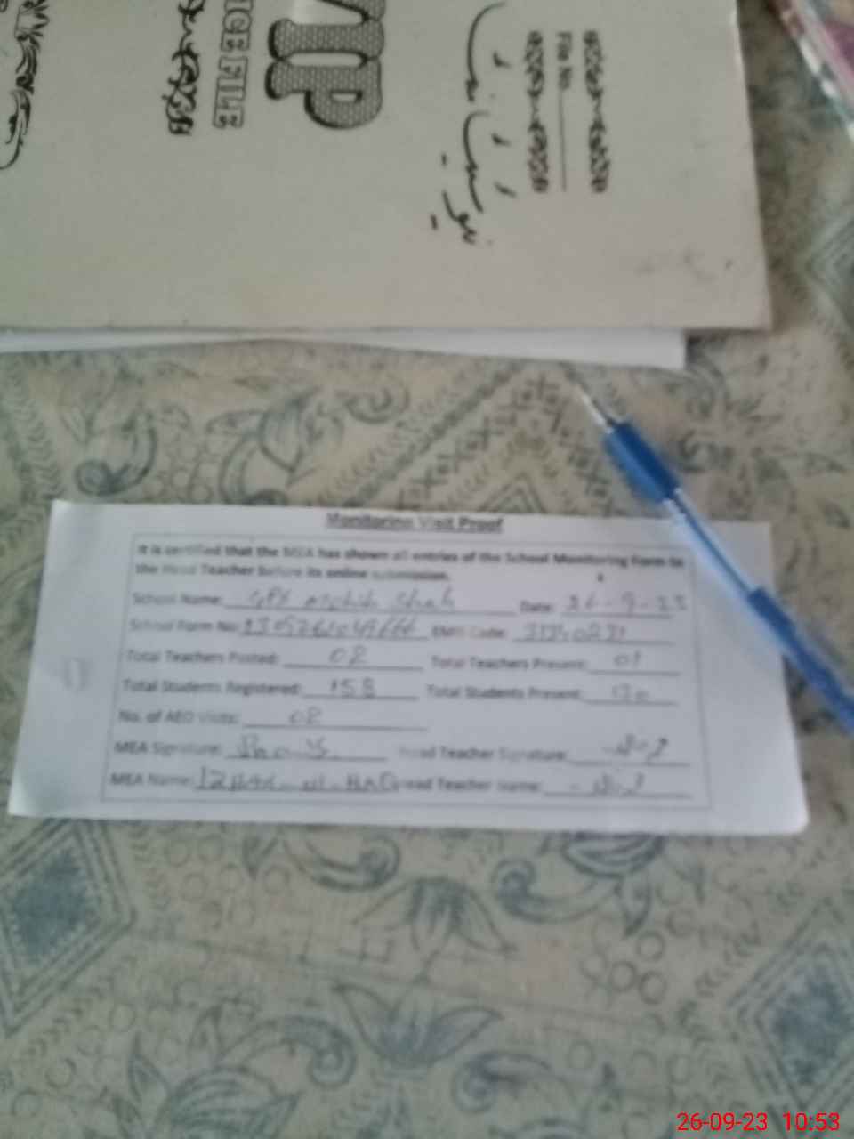 | EMIS Code: 31340231 | Name of School: GPS MOHIB SHAH | |||