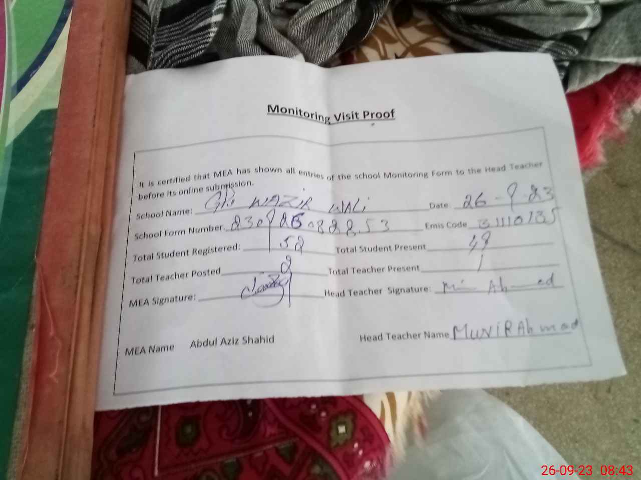 | EMIS Code: 31110135 | Name of School: GPS WAZIR WALI | |||