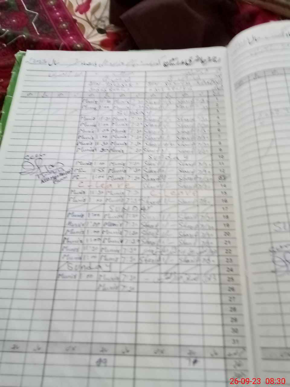 | Monitoring Date: 26-09-2023 | Start Time: 26-09-2023 08:28 AM | End Time: 26-09-2023 08:52 AM | Name of MEA: Ab**** Az**** Sh**** BN**** | |