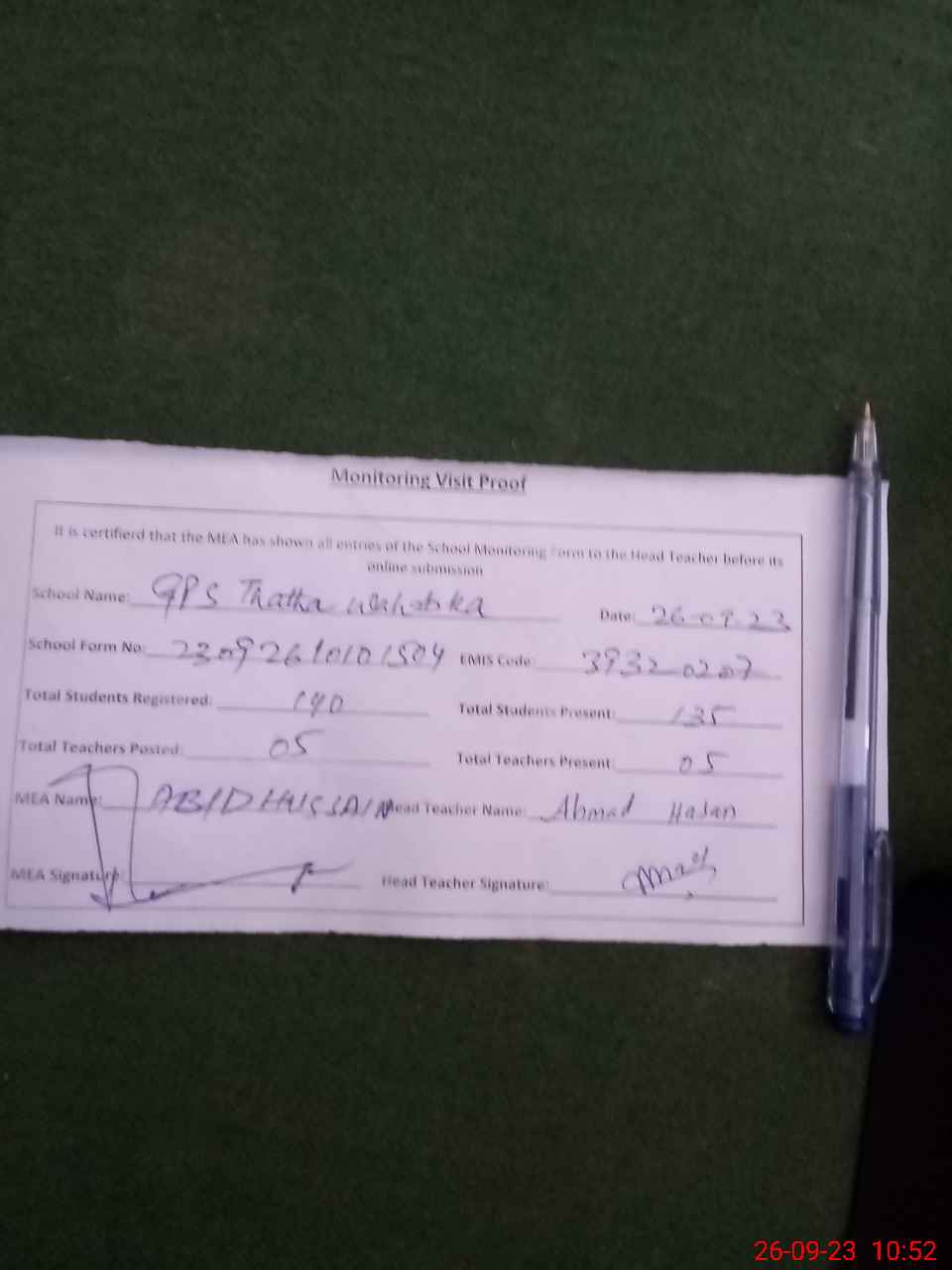| EMIS Code: 39320207 | Name of School: GPS THATHA WAHAB KA | |||