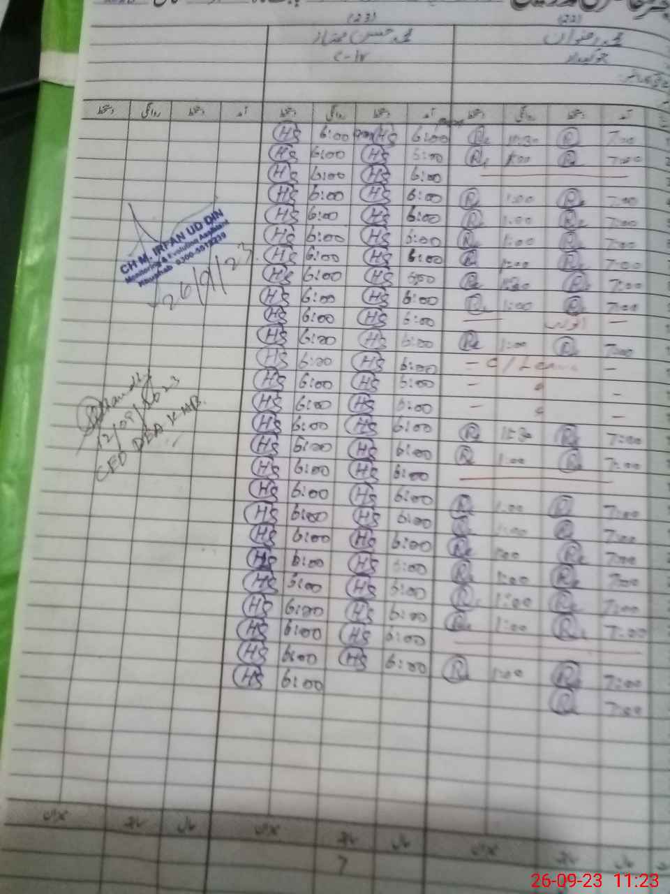 | CNIC | Full Name | Designation | R/C | Absence during last cal. month |