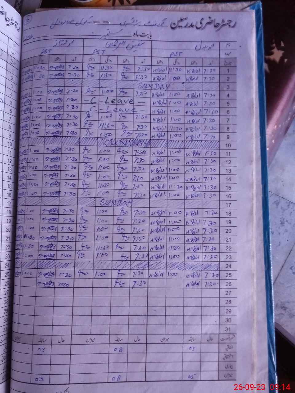 | Leave | Duty | Absent | Maternity | Medical | Ex- Pak |