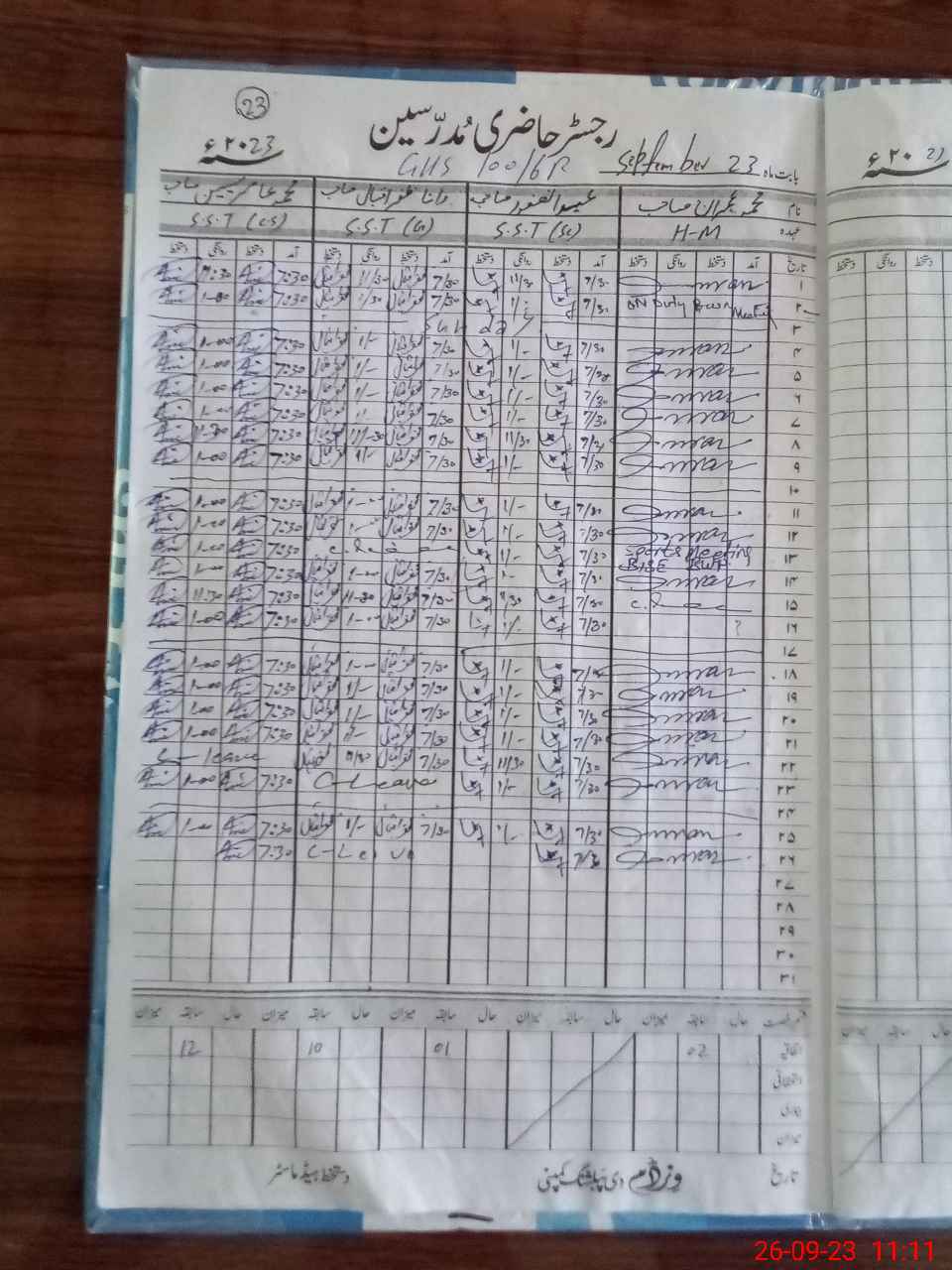 | CNIC | Full Name | Designation | R/C | Absence During Last Calender Month |