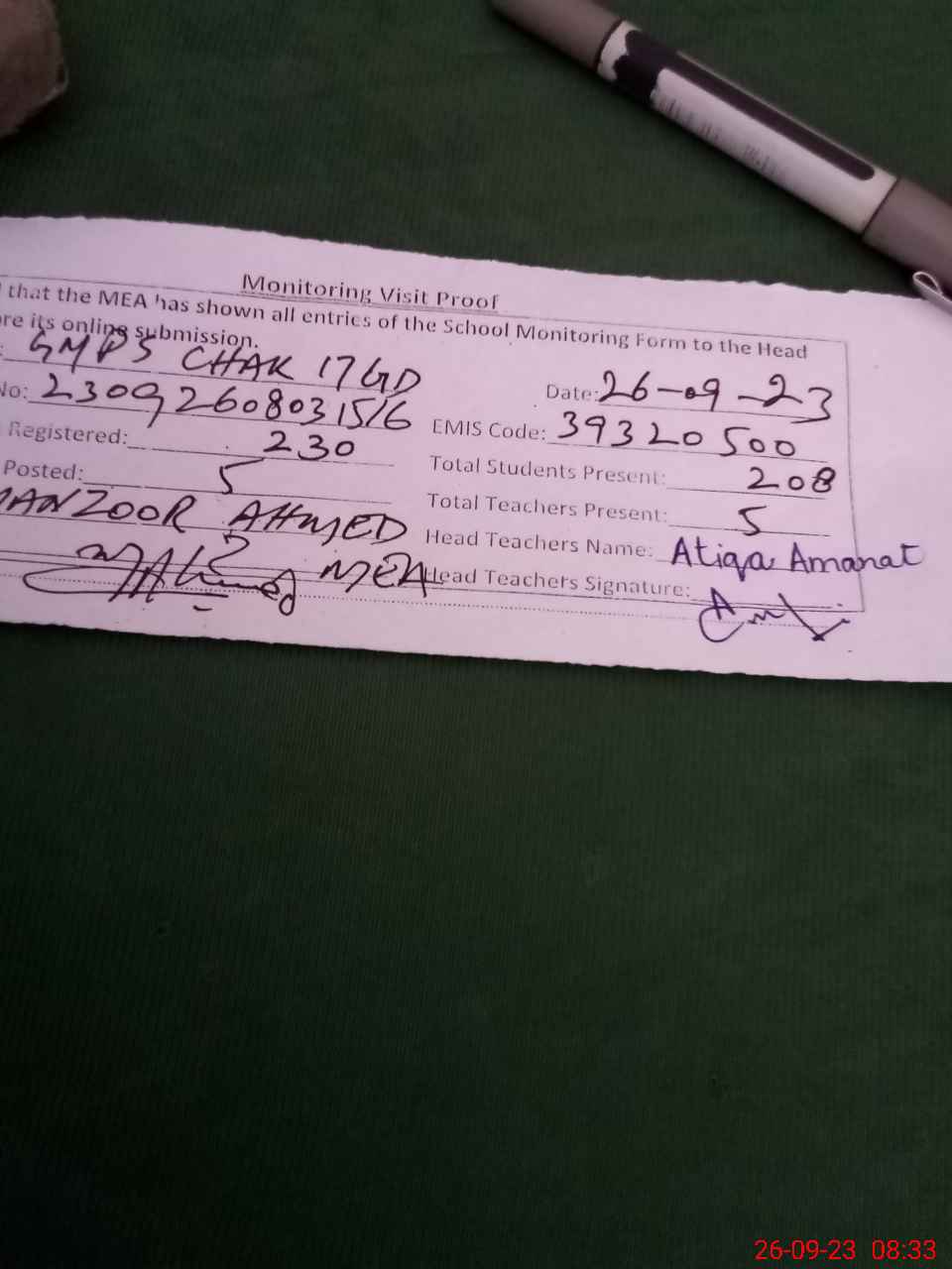 | EMIS Code: 39320500 | Name of School: GMPS 17/G.D | |||